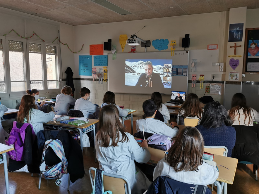 Se han hecho talleres virtuales con David Codony, responsable de actividades en el Vall de Núria y técnico medio en alta montaña de la estación de la Vall de Núria. Hemos querido que los Pirineos entraran en las aulas de estos niños y niñas. Estos talleres eran en directo y los niños y niñas podían interactuar, hacer preguntas y estar más cerca de los Pirineos.